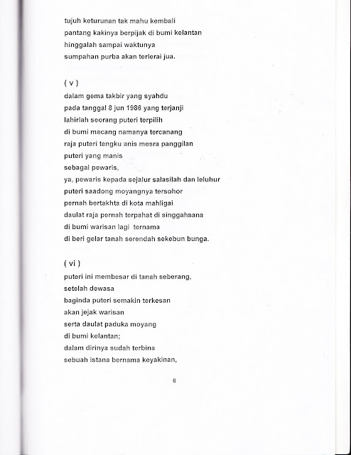 | Acara dimulai dengan ucapan dan rintihan melalui puisi yang didendangkan oleh Sri Ratu Saadong Vii sendiri |